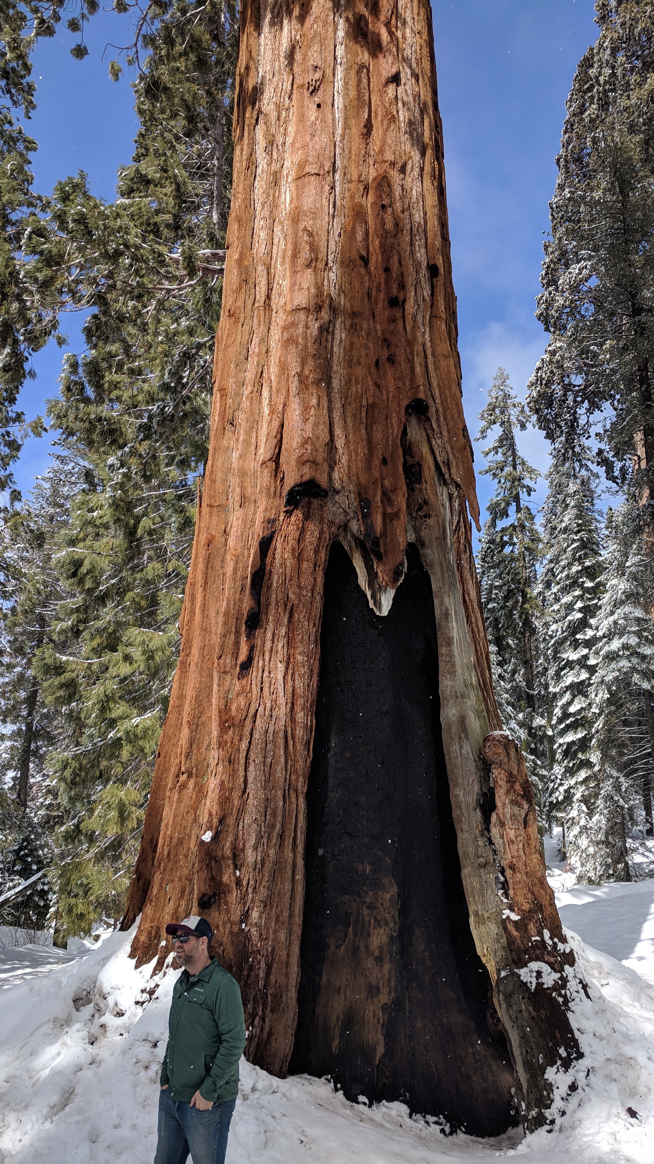 Started out camping the first night in Sequoia near the southern entrance. The campground was by a raging river from the rain and snow storms higher up the mountain. Oh man, everything was green. Living in a desert climate near the beach, and the city no doubt, seeing it was welcoming. Made want to think of moving there, for a second. Those two days we drove up and down the mountain twice to see the giant sequoia trees, including General Sherman. You stand under them and be marveled at their size and history.